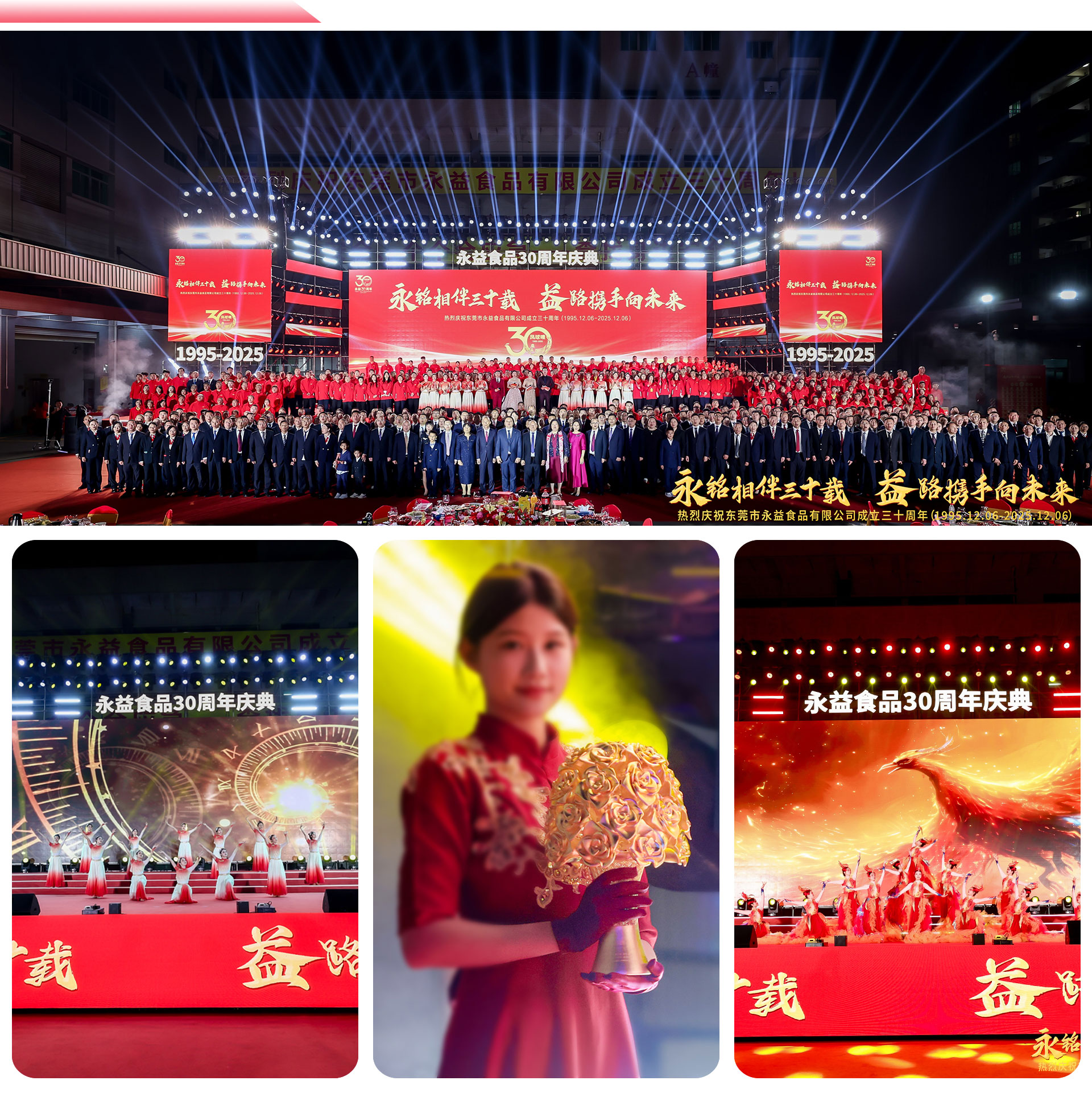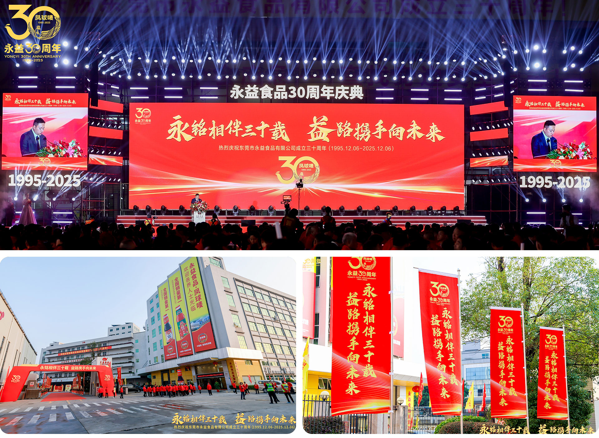 三十载风雨兼程,从一隅厂房到行业标杆,从本土品牌到民族骄傲,东莞市永益食品用三十年时光,深耕调味赛道,铸就“凤球唛”等家喻户晓的优质品牌,书写了一段实业兴邦、匠心传承的奋进华章。2025年12月6日,永益食品三十周年庆典盛典隆重举行,全国各地永益同仁、行业嘉宾、合作伙伴齐聚一堂,共忆峥嵘岁月,共赴全新征程,这场规模盛大、氛围热烈、流程圆满的周年盛典,成为企业周年庆典的标杆案例,而背后全程保驾护航的,正是京铮传媒联合汗马文化。